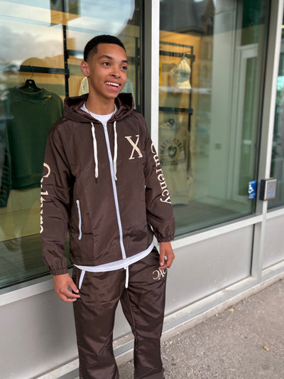 Culture x Currency “Panda Authority” Windbreaker Tracksuit – Brown w/ Tan Embroidery